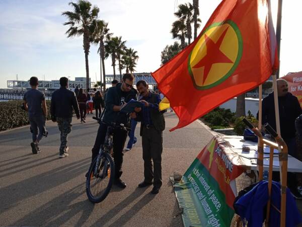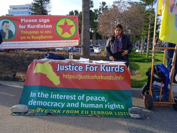Şehit Delil Botan Gençlik İnisiyatifi öncülüğünde Kıbrıs’ın Limasol kenti Moloz Park’ta PKK’nin yasaklı listeden çıkarılması amacıyla kurulan stantla imza toplandı.