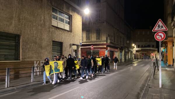 Saat 22.00’da Marsilya’nın Belle de Mai merkezinde toplanan gençler, Derîk, Mexmûr ve Şengale yönelik Türk devletinin eş zamanlı saldırılarına karşı sloganlarla yürüyüşe geçti.