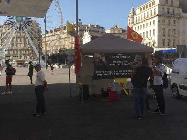 Marsilya'da "Öcalan'a özgürlük, Kürdistan'daki işgale son" şiarıyla başlatılan çadır eylemi sürüyor.