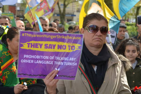 Mitingde YJK-E adına konuşan Delal Yaman, 2 aydan bu yana Türkiye cezaevlerinde tutsakların açlık grevinde olduğunu hatırlattı ve şunları ekledi: “Açlık grevinde olan yoldaşlarımızın ilk temel talebi Kürt Halk Önderi Abdullah Öcalan üzerindeki tecridin kaldırılması ve OHAL ile birlikte cezaevlerinde yaşayan hak ihlallerinin bir an önce son bulması için iki aydan bu yana açlık grevindeler. Biz Avrupa’da yaşayan Kürdistanlılar ve dostları olarak bu eylemi Avrupa kamuoyuna yansıtmak için eylem yapmalıyız” dedi.