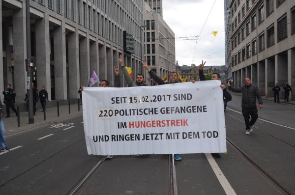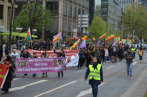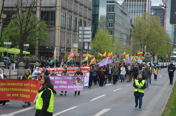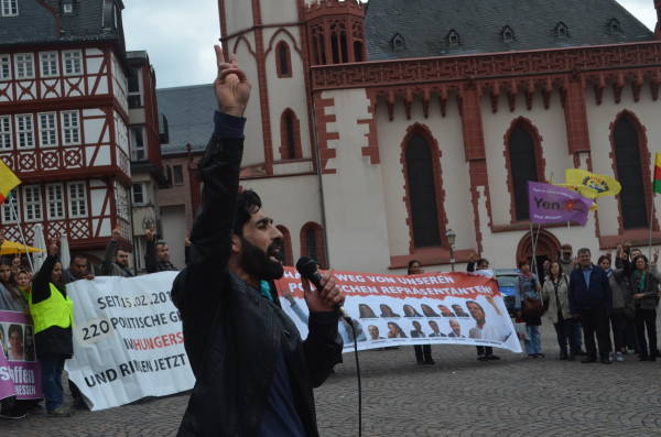 Amara Kadın Meclisi ve Frankfurt Demokratik Kürt Toplum Merkezi öncülüğünde düzenlenen yürüyüşe Frankfurt, Giessen, Darmstadt, Hanau, Offenbac’ta yaşayan Kürdistanlılar ve dostları katıldı. Yüzlerce kişinin katıldığı yürüyüşte, “Kürdistan cezaevlerinde siyasi tutsaklar 2 aydan bu yana açlık grevinde, siyasi tutsaklara özgürlük” pankartı taşındı. Römerplatz’a kadar yürüyen kitle, “Biji berxwedana zindana”, “Bijî Serok Apo”, “Kirli ellerini HDP üzerinden çek”, “Direne direne kazanacağız” sloganı atan kitle, Römerplatz’da bir miting düzenledi.