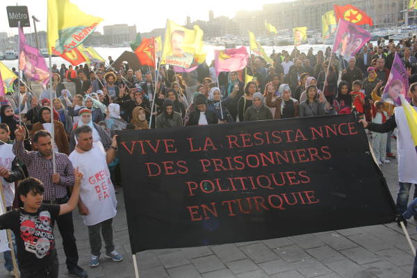Canebierre Meydanı’nda başlayan yürüyüşe Kürdistanlılar ve dostları katıldı. Eylem Vieux-Port Meydanı’na kadar devam etti. Burada ise bir miting yapıldı. Bir dakikalık saygı duruşu ile başlayan mitingde Kürdistan ile Dayanışma Komitesi adına konuşmalar yapıldı. Son olarak Demokratik Toplum Merkezi adına yapılan konuşmada zindan direnişçileri selamlanarak, direnişçilerin selamlanması gerektiği belirtildi.