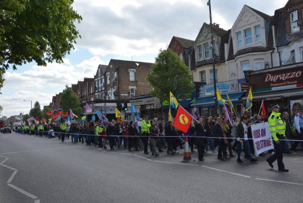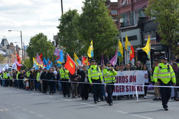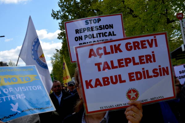 Demokrasi için Hayır Platformu tarafından organize edilen Manor House istasyonundan başlayıp Wood Green’de sona erdi. Yüzlerce kişinin katıldığı yürüyüşte 60’ıncı günü geride bırakan açlık grevlerine destek verme ve taleplerine kulak verme çağrısı yapıldı. Yürüyüş boyunca devrimci tutsaklara destek sloganları atılırken, AKP hükümetinin zindanlardaki baskıları kınandı.