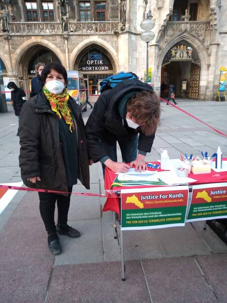 PKK yasağının kaldırılması amacıyla başlatılan imza kampanyası için Münij Marienplatz’da stand açıldı.