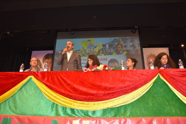 HDP Şırnak Milletvekili Faysal Sarıyıldız da kongreye yaptığı konuşmada AKP hükümetinin Kürdistan’da katliamlar ile ayakta durmaya çalıştığını kaydederek, Erdoğan’ın tüm dünya için ne kadar tehlikeli olduğunun görüldüğünü ifade etti. Avrupa siyasetinden bir beklentilerinin olmadığını, tarihin Kobanê’de, Rojava’da yazıldığını ifade eden Sarıyıldız, “halk olarak sadece keni onurumuzu koruyoruz ve özgücümüze güveniyoruz” dedi.