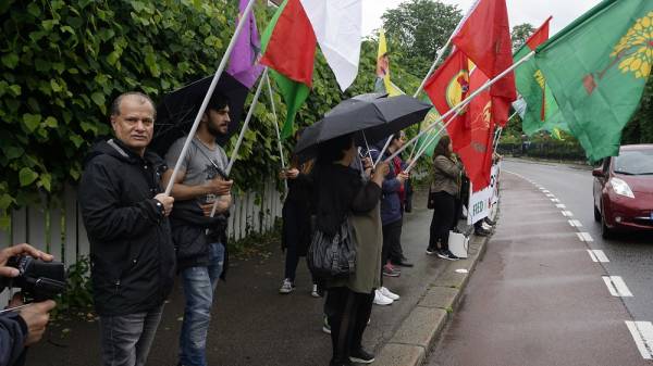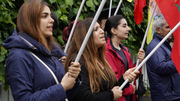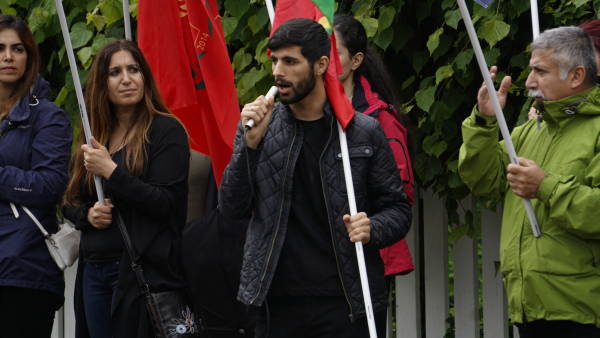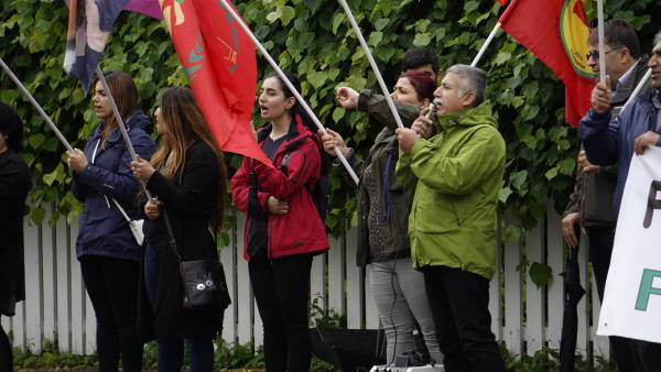 Türk büyükelçiliği önünde düzenlenen eylemde Öcalan’a özgürlük sloganları atıldı.