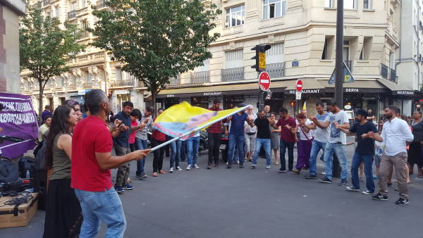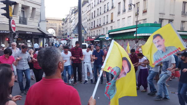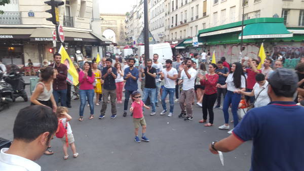 Fransızların yoğun ilgi gösterdikleri etkinlikte Kürdistanlılar “Öcalan'a özgürlük”, “Bê Serok Jiyan Nabe” sloganları eşliğinde çekilen halaylarla geç saatlere kadar devam etti.