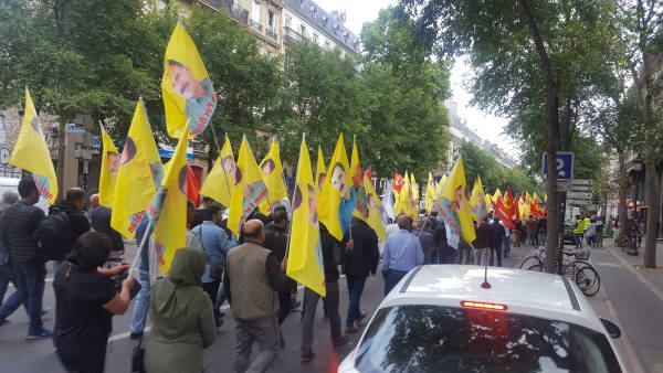 Saat 18.00'de Gar de l’Est önünde Kürdistanlıların yoğun katılımı ile başlayan yürüyüşte "Türk faşizmi kaybetti, Kürdistan kazandı" " Öcalan'a özgürlük" pankartı taşındı.