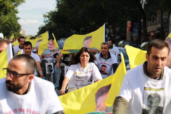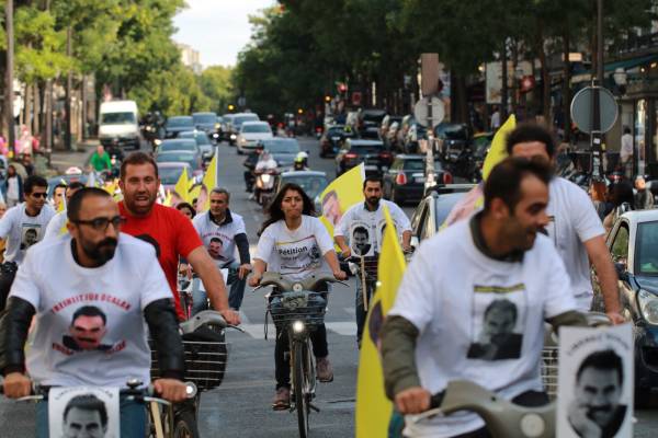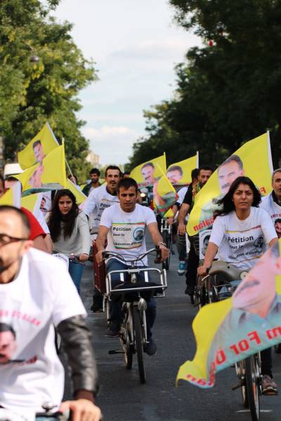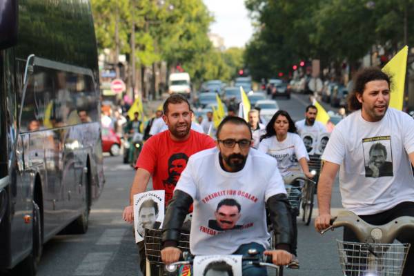 Fransa'nın başkenti Paris'te Kürt Halk Önderi Abdullah Öcalan'ın üzerinde uygulanan tecride dikkat çekmek ve özgürlüğünün sağlanması için bisiklet turu ile eylem düzenlendi.