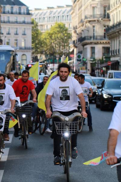 Fransa Demokratik Kürt Konseyi’ne (CDK-F) bağlı Demokratik Kürt Toplum Merkezi meclis çalışanları katılımı ile onlarca bisiklet ile Paris'in kalabalık yerleri olan Rerpublique, Opera, Chatlet ve Champs- Elysees'de bisiklet turu ile Öcalan'ın üzerinde uygulanan tecride dikkat çektiler.
