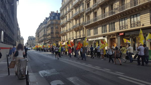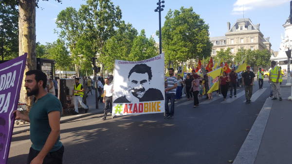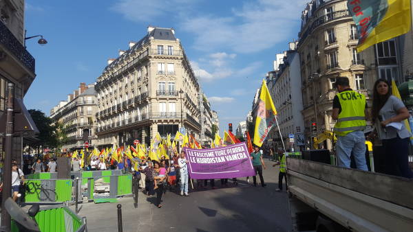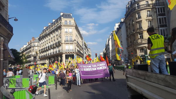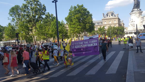 Fransa Demokratik Kürt konseyi (CDK-F) ve Ciwanen Azad Paris öncülüğünde saat 18.00'de Republıqe meydanında başlayan yürüyüşe Kürdistanlılar ACTIT temsilcileri katıldı.