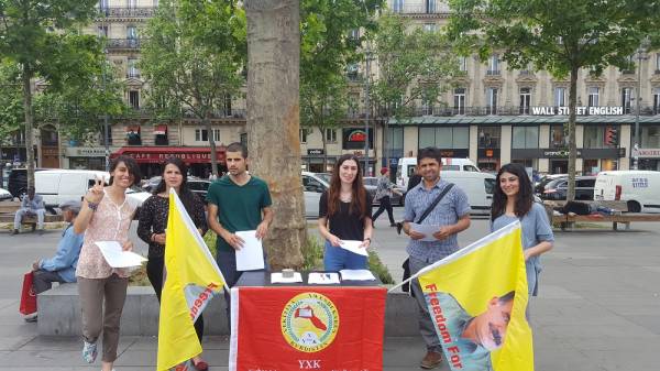 Fransa'nın başkenti Paris'te Kürdistan Öğrenciler Birliği (YXK) Fransa Komitesi üyeleri, Kürt Halk Önderi Abdullah Öcalan'ın üzerinde uygulanan tecride dikkat çekmek ve özgürlüğünün sağlanması için stant açtılar.