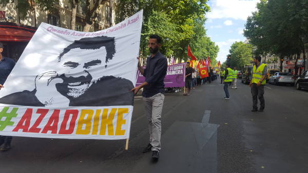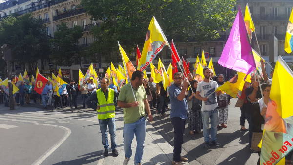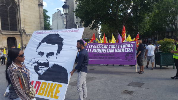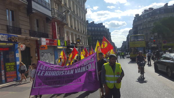 Saat 17.00'de Gar de l’Est önünde toplanan Kürdistanlılar " Azad Bıke" ve " Öcalan'a özgürlük " pankartı ile yürüyüşe geçti.