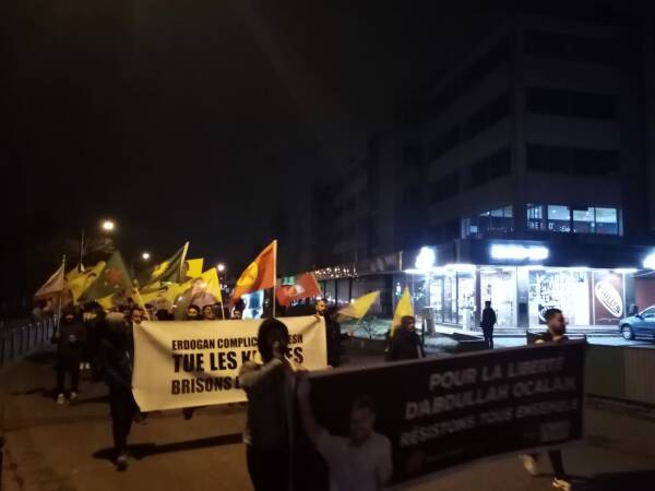 Gringy Demokratik Kürt Toplum Merkezi önünden Gringy tren istasyonuna kadar yürüyen gençler, Rojava’ya yönelik işgal saldırılarına da tepki gösterdi.