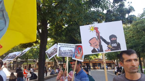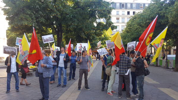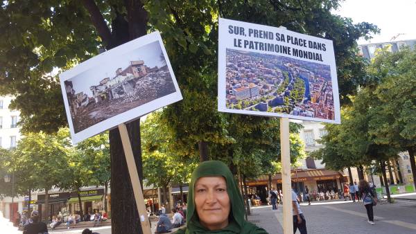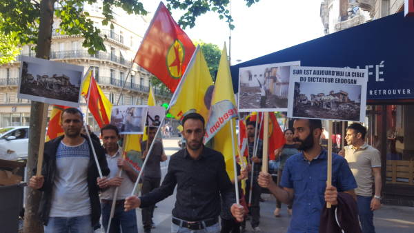 Saat 19.00'da Paris Demokratik Kürt toplum merkezi meclisi üyeleri tarafından yapılan eylemde " Sur diktatör Erdoğan'ın hedefinde" ve Türk Devletinin yaratmış olduğu yıkımın fotoğraflarının bulunduğu dövizler taşınarak Sur'da yaşananlar ile ilgili bildiriler dağıtıldı.