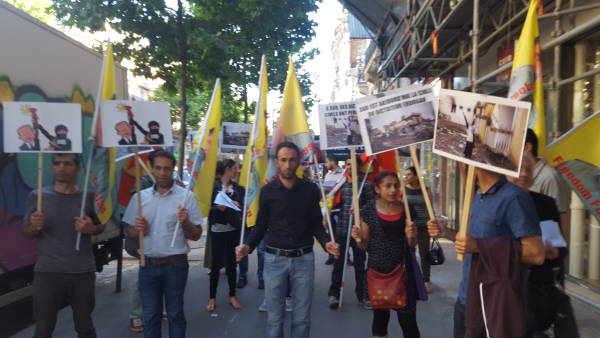 Fransa'nın başkenti Paris'te Türk Devletinin Sur'da gerçekleştirdiği katliam ve yıkımın ardından halkı göçe zorlaması yapılan bir eylemle protesto edildi.
