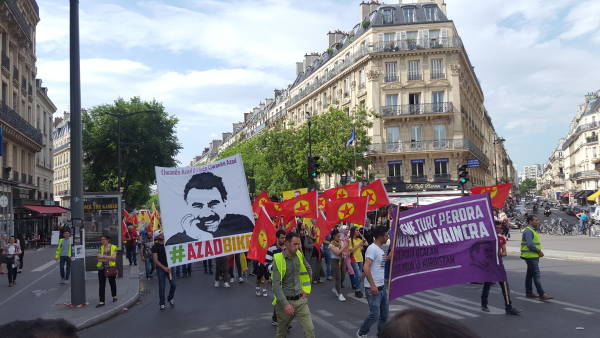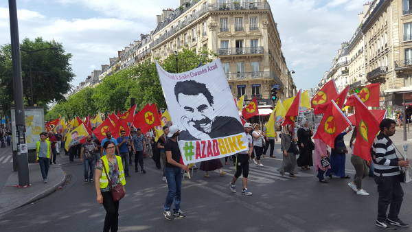 Paris’te Kürt Halk Önderi Abdullah Öcalan’a özgürlük talebi ile bir yürüyüş düzenlendi.