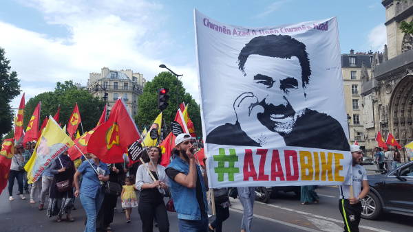 Kürdistanlılar, Öcalan'ın fotoğraflarının olduğu" Azad bike", "Türk faşizmi kaybetti Kürdistan kazandı" pankartları taşıyarak "Öcalan'a özgürlük" sloganları ile yürüyüşe geçti. Yürüyüş boyunca Öcalan üzerinde uygulanan tecridi anlatan bildiriler dağıtıldı.