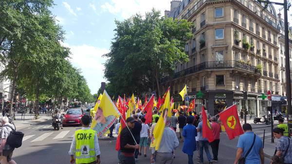 Fransa Demokratik Kürt Konseyi’nin (CDK-F) çağrısıyla yapılan yürüyüşe Paris ve çevresindeki DKTM'ler, Fransa Kürt Kadın Hareketi ve Ciwanên Azad Paris de destek verdi. Yoğun bir katılımın olduğu yürüyüş saat 16.00’da Gare de L’Est önünde başladı.