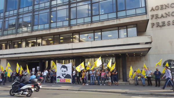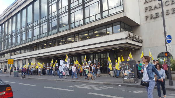Saat 19.00'da Fransa Demokratik Kürt Konseyi (CDK-F)'nın çağrısı ile Fransız Haber Ajansı (AFP) binası önünde yapılan eyleme Paris ve çevresindeki Demokratik Kürt toplum merkezi meclisi üyeleri ve ACTIT temsilcileri katıldı.