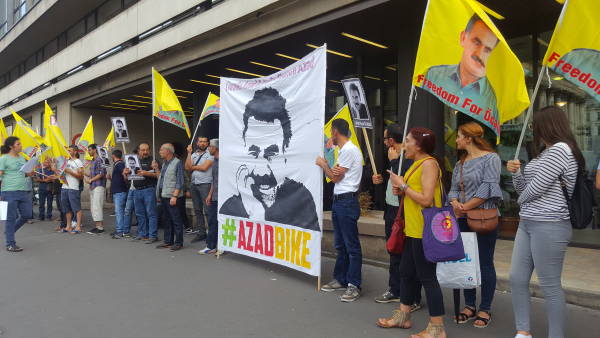 Öcalan'a özgürlük pankart ve dövizlerin açıldığı eylemde Kürt Halk önderi Abdullah Öcalan'ın üzerinde uygulanan tecride dikkat çeken bildiriler dağıtıldı.