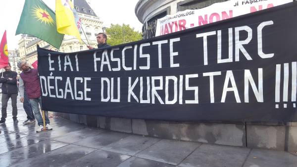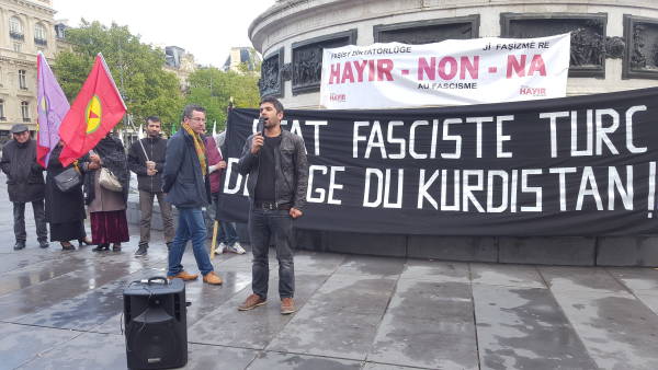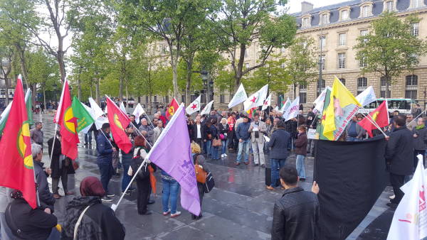 Fransa'nın başkenti Paris'te HDK-Fransa bileşenleri Türk Devletinin Rojava'ya ve Şengal'e saldırıları ve 16 Nisan'da yapılan şaibeli referandum seçimleri protesto etti.