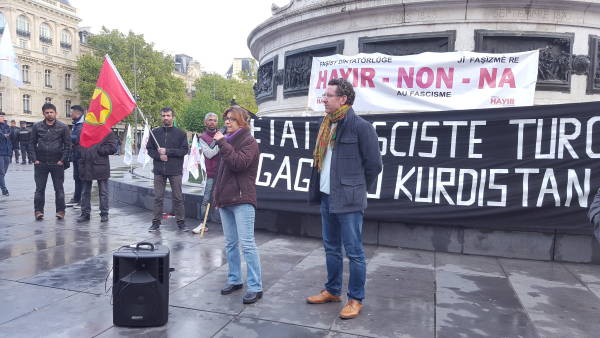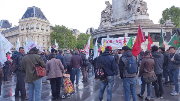 HDK-Fransa'nın çağrısıyla saat 18.00' de République meydanında yapılan eyleme bir çok kurum temsilcileri ve üyeleri katıldı.
