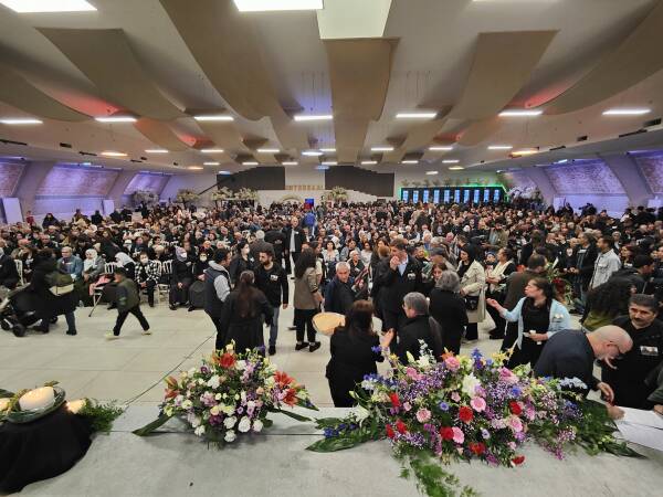 Sinevizyon sunumu sonrası Ali Haydar Kaytan ve Rıza Altun’un taziyelerindeki görseller, sahnedeki ekranlarda gösterildi.