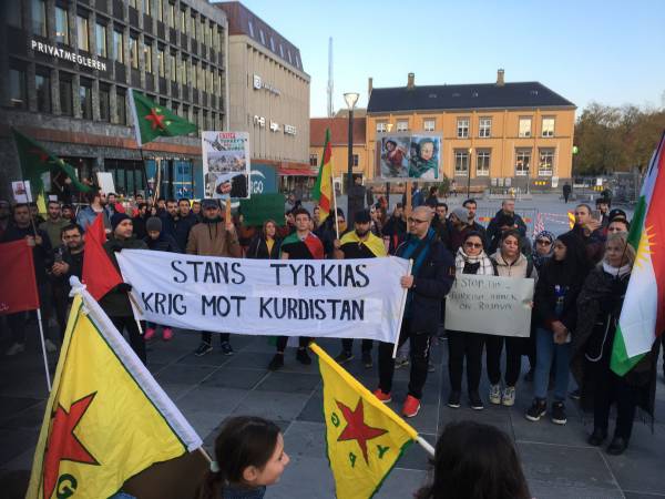 Norveç’in Stavanger kentinde Kürdistanlılar ve Norveçli dostların katılımı ile saat 17:00'da yapılan meşaleli yürüyüş ve dağıtılan bildirilerle Rojava halkına dayanışma mesajı verildi. Eylemde yapılan konuşmalarda ulusal çıkarların esas alınması gerektiği ve Kürtlerin yalnız olmadıkları vurgulandı.