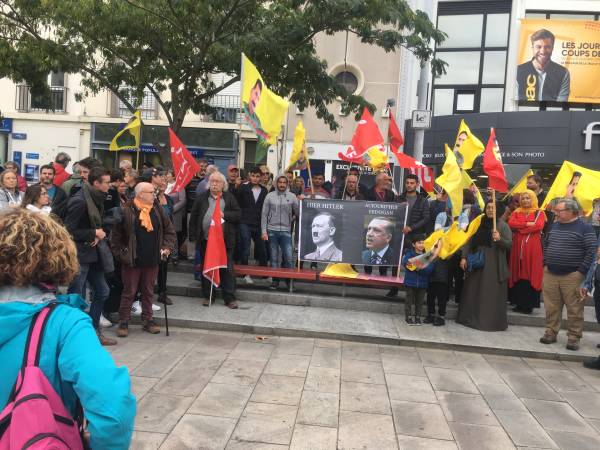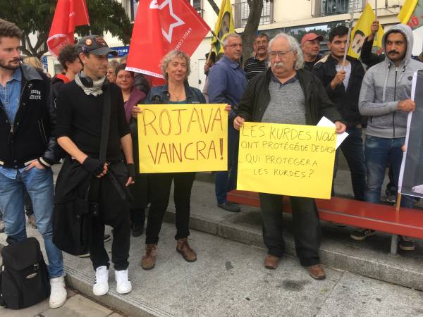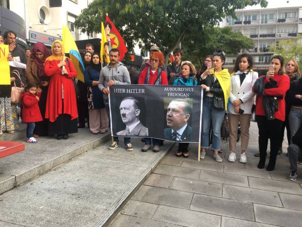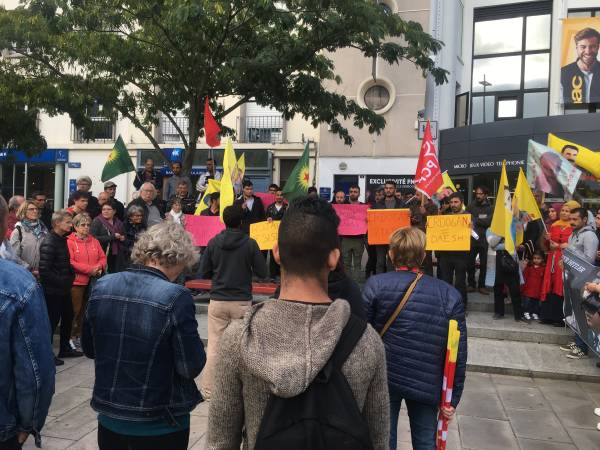 Türk devletinin Doğu ve Kuzey Suriye'ye yönelik başlattığı işgal saldırıları Fransa’nın Lorient kentinde Kürdistanlılar ve dostları tarafında protesto edildi. "Dün Hitler bugün Erdoğan" pankartını açan Kürdistanlılar ve dostları Fransızca el bildirileri dağıtarak başta Fransa hükümeti olmak üzere AB taraf ülkelerine Türk ordusunun işgal ve saldırılarına karşı net tavır ve yaptırım uygulama çağrılarında bulundu. Protesto eylemi Cumartesi günü Nantes kentinde düzenlenecek olan merkezi yürüyüşe katılım çağrıyla son buldu.