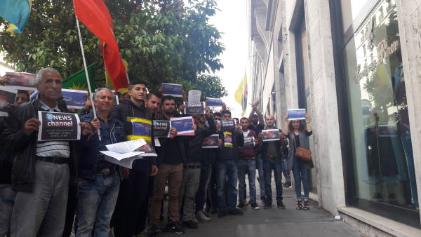 Eutelsat’ın Kürt televizyon kanallarının kapatma kararı İtalya’nın başkenti Roma’da protesto edildi.