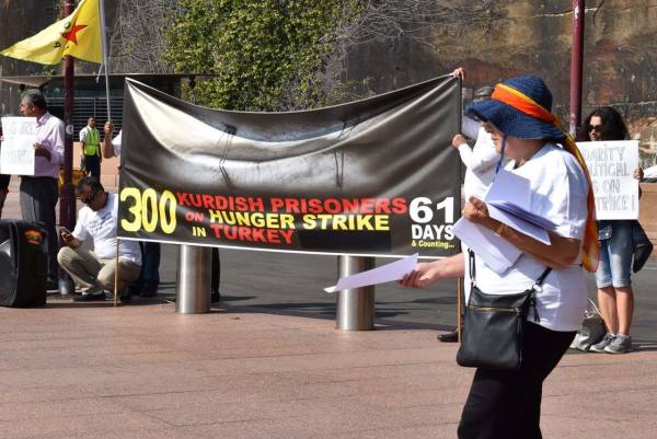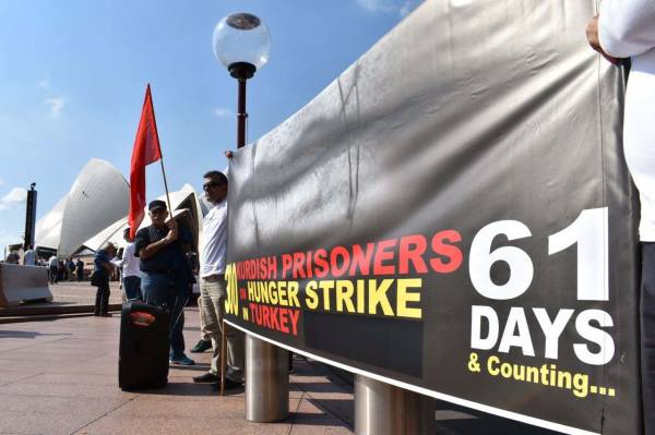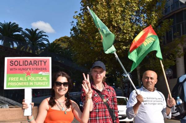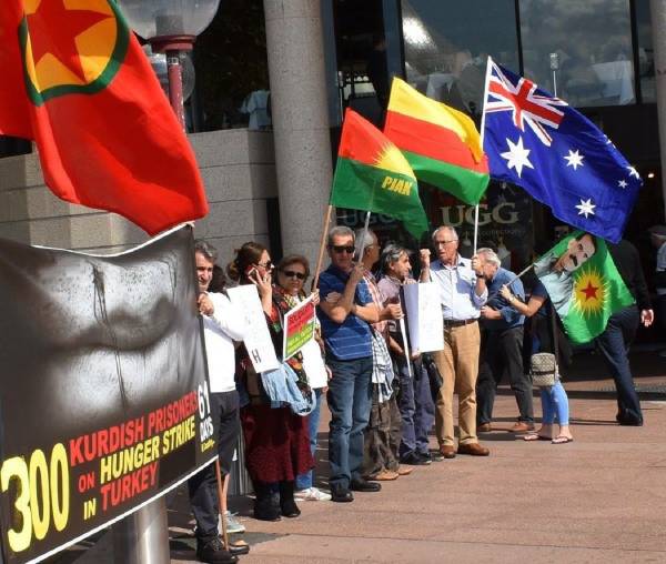 Avustralya'nın Sidney kentinde yaşayan Kürdistanlılar, zindandaki tutsakların açlık grevi direnişine destek vermek amacıyla eylem yaptı.