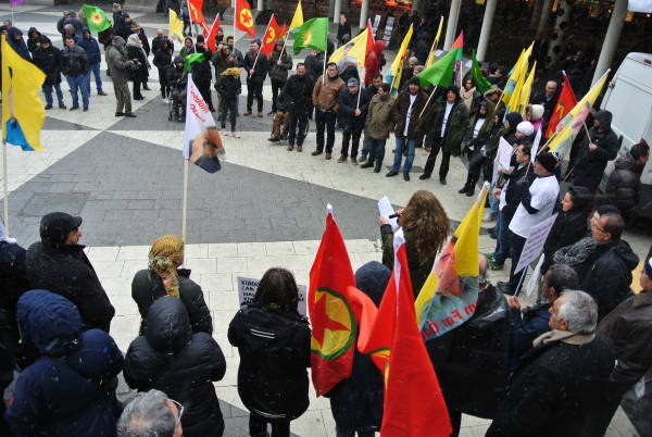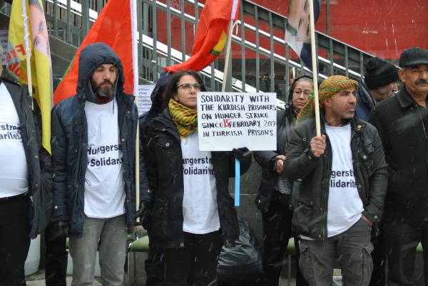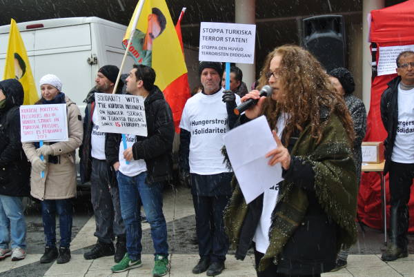 KNK adına konuşan Karvan Said, Türkiye zindanlarında tutulan tutsakların insan olmaktan kaynaklı taleplerinin Erdoğan rejimi tarafından reddedilmesi üzerine açlık grevine başladıklarını hatırlattıktan sonra, “Biz Türk devletinin bu talepleri derhal kabul etmesini talep ediyoruz. 60 günden beri süren açlık grevini sürdüren tutsaklar ölüm sınırında. İsveç ve Avrupa Birliği buna sessiz kalamaz. AKP şimdi yeni anayasayı baskı, tehdit ve şantajla halka kabul ettirerek Kürt halkı ve tutsaklara yönelik baskı, saldırı ve katliamları meşrulaştırmaya çalışıyor. Buna izin vermeyeceğiz” dedi.