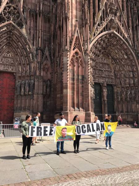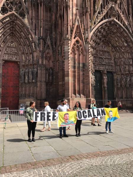 Fransa’nın Strasbourg kentindeki Erdal Welat gençlik Meclisi, Kürt Halk Önderi Abdullah Öcalan üzerindeki tecridi protesto etmek amacıyla katedral önünde bir protesto eylemi düzenledi.