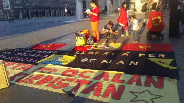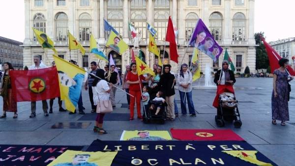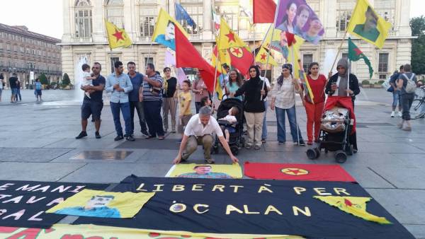 İtalya’nın Torino kentinde yaşayan Kürdistanlılar ve İtalyan dostları Kürt Halk Önderi Abdullah Öcalan’ın özgürlüğü ve Kürdistan’daki işgalin son bulması için miting düzenlendi.
