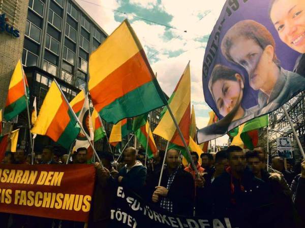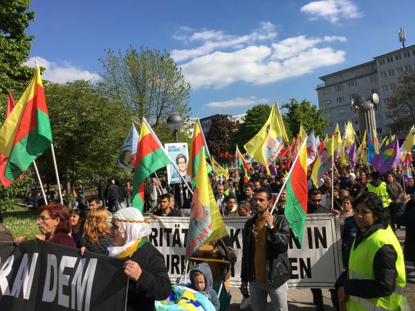 Hannover merkez Tren Garı önünde başlayan yürüyüşe binden fazla kişi katıldı.Yürüyüşte, ‘Rojava, Şengal yalnız değildir’, ‘Biji serok Apo, Biji Berxwedana YPG/ YBŞ, katil diktatör Erdoğan’ sloganları atıldı.
