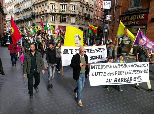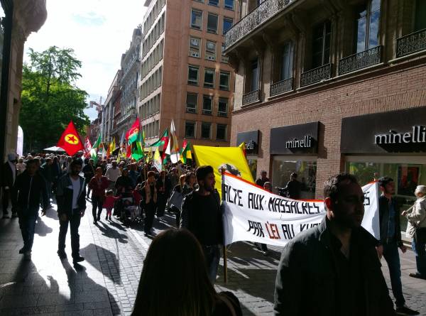 Fransa’nın Toulouse kentinde düzenlenen yürüyüş ve mitingde de Türk devletinin 25 Nisan’da Rojava ve Şengal’e yönelik saldırıları protesto edildi.