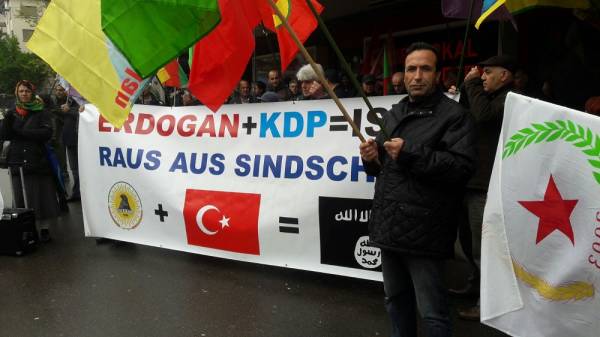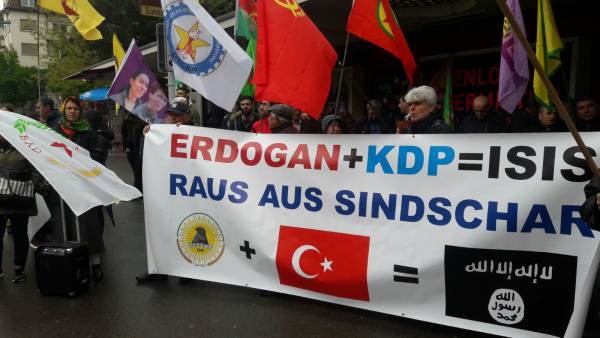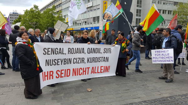 Demokratik Kürt Toplum Merkezi, HDK, DGB, SKB ve Ronahi Berivan Kadın Meclisi tarafından desteklenen eylem Mannheim merkez istasyonunda gerçekleştirildi. Saat 18’de başlayan eylemde NavDem tarafından hazırlanan bildiri okunurken, Êzidî Federasyonu, kadın hareketi ve MLPD’nin mesajları da okundu.