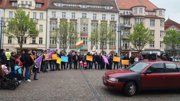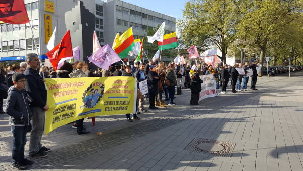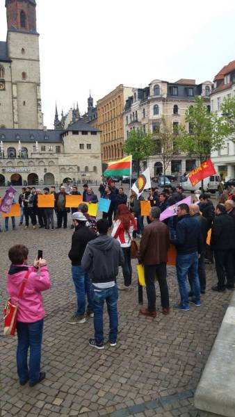 Almanya’nın Halle kentinde de Türk devletinin saldırıları protesto edildi. Kürdistanlılar tarafından düzenlenen eylem Alman sol örgütleri tarafından da desteklendi. Avrupa’ya sorumluluklarını yerine getirme çağrısının da yapıldığı eylemde, sık sık, “Direne direne kazanacağız”, “Bijî Serok Apo” sloganları atıldı.