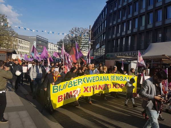 Çok sayıda Kürdistanlının katıldığı yürüyüşe, MLPD Partisi de destekledi.