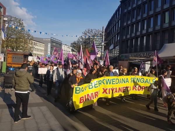 Almanya’nın Bochum kentinde Türk savaş uçaklarının Şengel ve Rojava'da gerçekleştirdiği bombardımanı kınamak amacıyla bir yürüyüş gerçekleştirildi.
