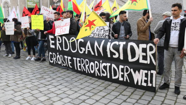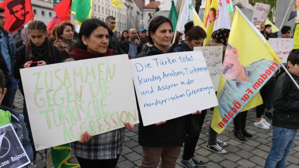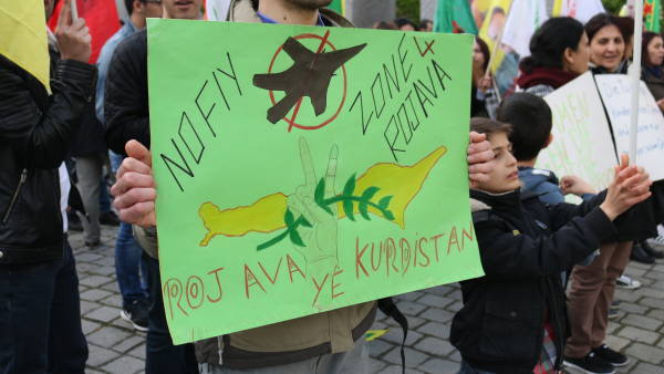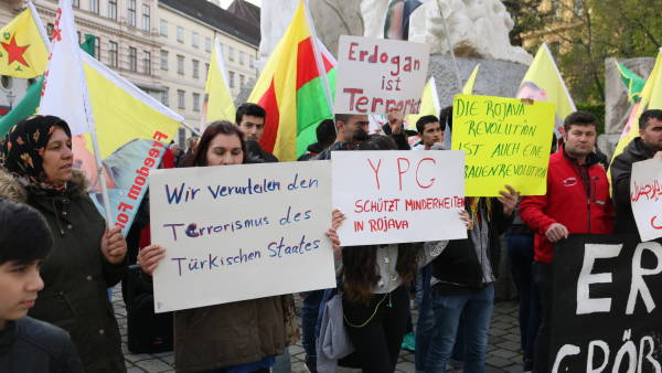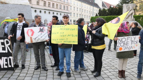 Tarihi Albertina Sanat Müzesi önünde toplanan çok sayıda eylemci “Terörist Türkiye” ve “Katil Erdoğan” sloganları attı. Eylemde yapılan konuşmalarda Türkiye’nin DAİŞ ile birlikte hareket ettiği ifade edilerek, Türk savaş uçaklarının bombardımanının bu anlama geldiği kaydedildi.