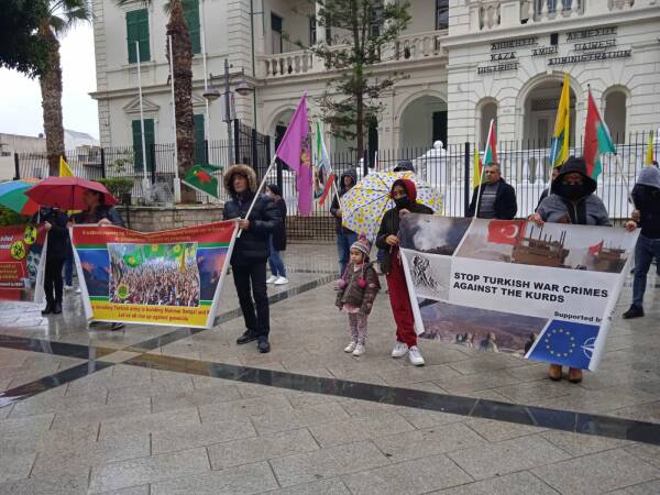 Türk devletinin 1 Şubat günü Maxmur, Şengal ve Rojava'ya dönük eş zamanlı soykırım saldırıları Limasol’da protesto edildi.