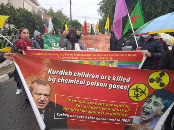Kıbrıs’ın Limasol kentinde Türk devletinin 1 Şubat günü Maxmur, Şengal ve Rojava'ya dönük eş zamanlı soykırım saldırılarını protesto etmek amacıyla yürüyüş ve miting düzenlendi.