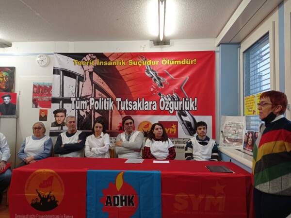 Cuma günü Zürih Eğitim Kültür Merkezi’nde açıklama yapan eylemciler, AKP-MHP faşist blokunun işçilere, köylülere, emekçilere hayatı zindan eden baskıcı rejimini, politik tutsaklar üzerinden bir kat daha katmerli şekilde sürdürdüğünü, buna karşı bütün toplumun ses çıkarması gerektiğini belirtti.
