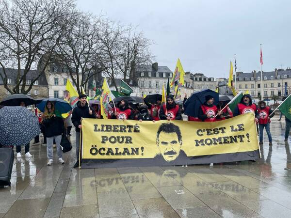 Vannes Belediyesi önüne gelen yürüyüşçüler, burada basın açıklaması yaptı.