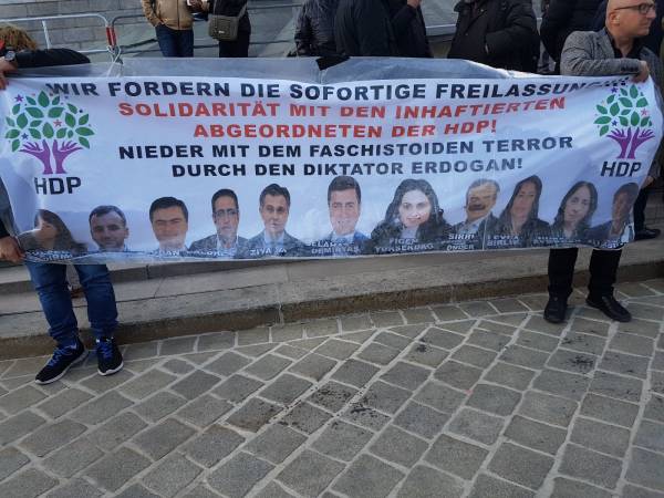 Eylemde Almanca ve İngilizce bildiriler de dağıtıldı.