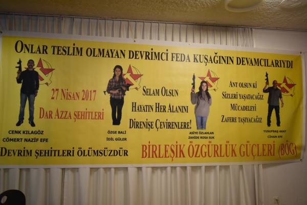 Rojeva’da Daiş’le savaşırken yaşamını yitiren Devrimci Komünarlar Partisi (DKP) MK üyesi BÖG komutanı ve HBDH sözcüsü Ulaş Adalı (Gökhan Taşyakan) Zürih’te onlarca kişinin katılımıyla düzenlen etkinlikte anıldı.