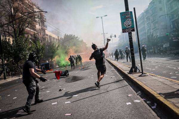 Mahkeme binasının hemen bitişiğindeki Prosfygika’da ise anarşist gruplar olası polis saldırısına karşı güvenlik kordonu oluşturdu ve bölgeye girişleri kontrollü bir şekilde sağladı.