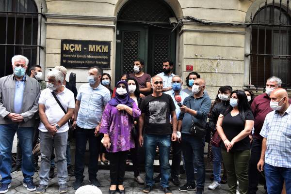 Sık sık “Baskılar bizi yıldıramaz” sloganının atıldığı eylemde, ilk sözü MKM Sanatçısı Çîya Şenses aldı. Şenses, Kürtçe yaptığı konuşmada , MKM’nin 30 yıldır çok zor ve zahmetli süreçlerden geçmesine rağmen hep ayakta kaldığını vurguladı. MKM’nin Ortadoğu halklarının kültür merkezi olduğunu söyleyen Şenses, şöyle konuştu: